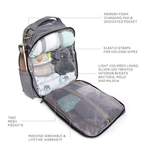 STYLE & FUNCTION: BRB’s mommy pocket has a compartment for glasses and ID or credit cards, so you won’t need a purse. It also has a pocket for a cell phone and a key lanyard. And the big front pocket opens up portrait style, giving you easy access to diapers and wipes.