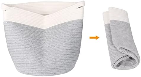 {Suitable Size: 14”x 14”x 16”} The rope baskets for storage measuring 16 inches high and 14 inches around that is enough to store towels, blankets, laundry, toys, throw pillows, cushions or anything else you might need in your home. And the woven storage basket can be placed on the floor, sit on a large bookshelf or on a closet shelf. The rope storage baskets also can folds when you aren’t using it.