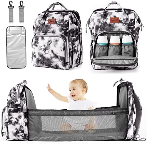 [Large Capacity Baby Diaper Bag] – Black and white Tie Dye design diaper bag backpack helps to accommodate not only baby boy’s or girl’s essentials, such as diapers, bibs, other baby toiletries but mom’s phone, wallet, keys, power bank, Cosmetic bag, etc. Each independent pocket designed scientifically helps you to keep things organized and fetch out what you need the most quickly. Going out with your baby only needs a SYNPOS mummy bag.