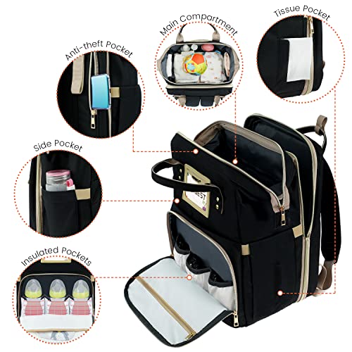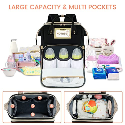 👶【Large Capacity & Multi-pocket 】Size:12.2″L x 10.2″W x 18.1″H. large capacity & wide open diaper bag backpack with 16 independent pockets, with scientific partition, will carry more newborn essentials things, like milk bottles, clothes, hats, towels blanket, sunscreen, underwear and diapers etc. 3 Insulated aluminum foil pockets hold 5-11 oz baby bottles and keep 3-5 hour warm (fits major baby bottle brands). You don’t have to worry about your baby getting cold milk.