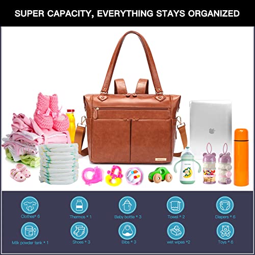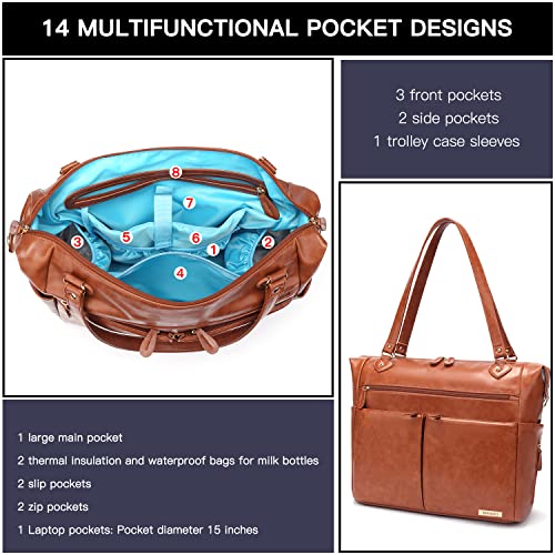 FASHIONABLE APPEARANCE AND MULTIPLE WAYS OF USE: Multifunctional diaper bag backpack can be freely switched to 5 ways of use (can be worn as a diaper bag backpack, diaper bag tote, baby diaper bag shoulder bag, diaper bag crossbody bag) A convenient luggage cover on the back slides easily over the carry-on handle, ensuring safety and making travel easy It’s easy. The stylish look allows you to use it for any occasion without wasting more money on other bags.