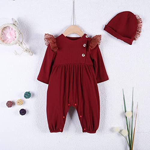 🥰【Adorable Baby Girl Clothes】Ruffle long sleeve romper for baby girl, match with hats of the same style, this baby girl outfit make your little baby so adorable and attractive.