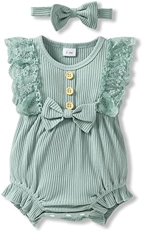 Design:Unique lace ruff romper with pretty pure color,cute & matching headband bring a bright and confident feeling to your little girl.Stretch jumpsuit is easy to wear or take off.