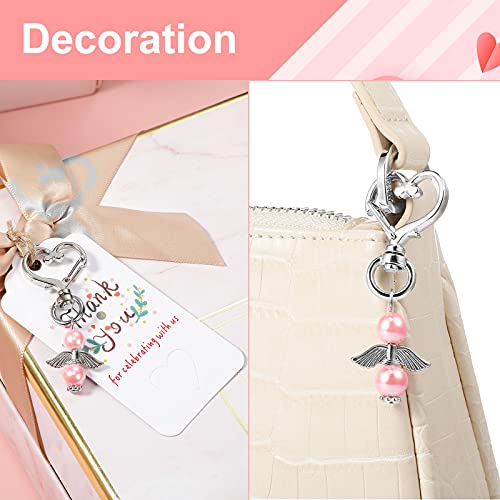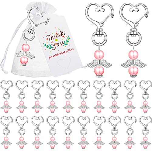 Creative design: baby angel decorations are designed with angel and heart ring buckle, with generous gleaming brushed-metal, it is the nice present for guest supplies; You can put anything in the organza bag, write your blessings on the thank you tag and match it with the angel keychain as a present to guests