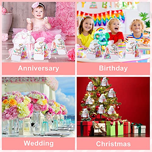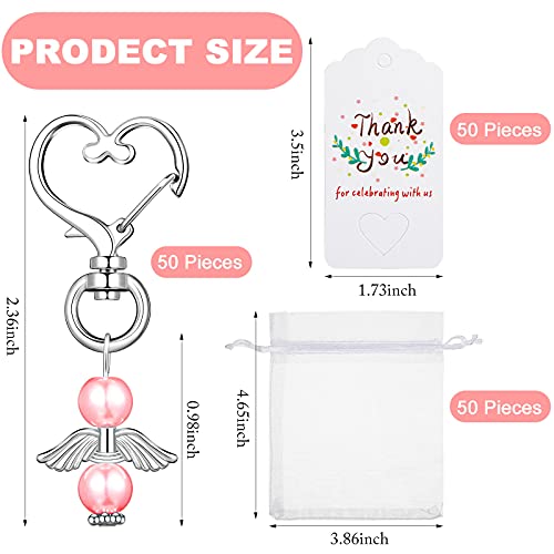 Package contents: each wedding favors for kids contains 150 pieces of baby shower return favors, including 50 pieces angel keychains, 50 pieces Thank you cards, 50 pieces organza bags, which are enough to meet the needs of different occasions