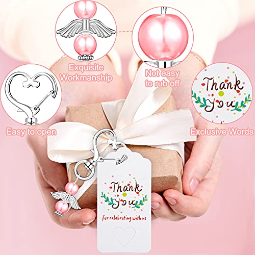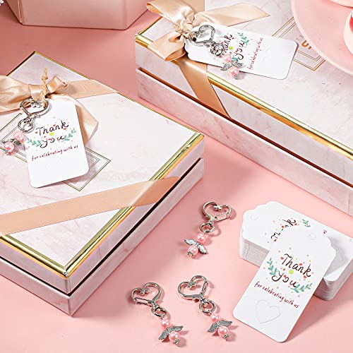 Quality material: the angel keychains are mainly made of zinc alloy and ABS with smooth surface, which is strong for you to keep for a long time, thank you cards are mainly made of coated paper, and organza bags are mainly made of organza, which are light in weight
