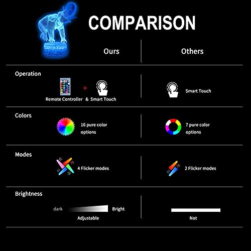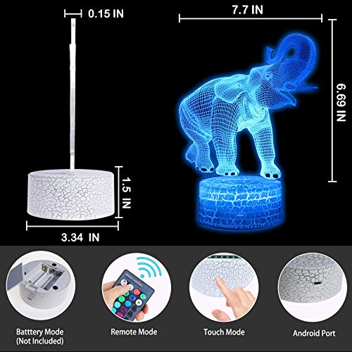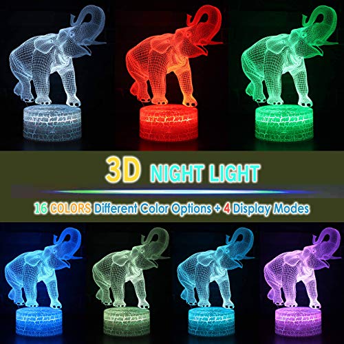 TriPro Elephant Wild Animals Illusion Room Decor Night Light Desk Lamp with 16 Colors Change, Smart Touch & Remote…