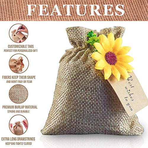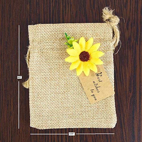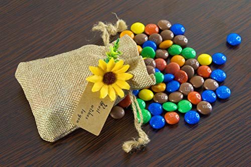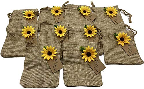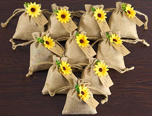 UNIQUE DESIGN BURLAP BAG WITH STRING – Real look sunflower decorations that are ideal wedding decorations for ceremony or wedding reception decorations. These burlap treat sacks are not only good for wedding decoration or wedding party gifts but also a great idea for your home decor, festival, party favor, celebration, and craft DIY project.